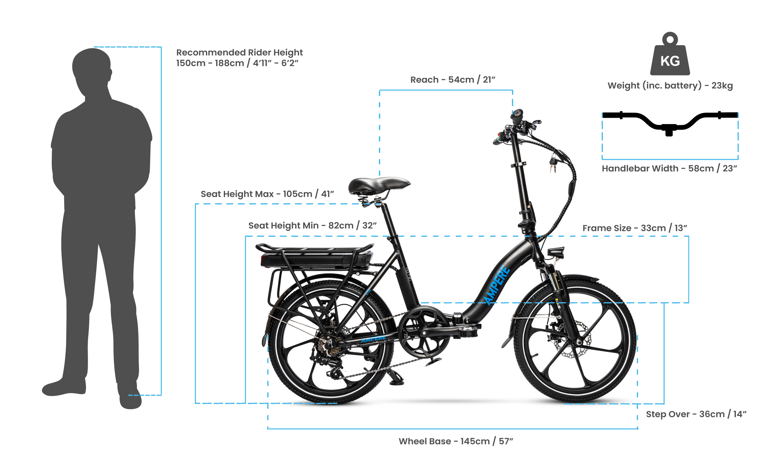 Weight: Approx. 23kg — balanced for portability and ride stability.