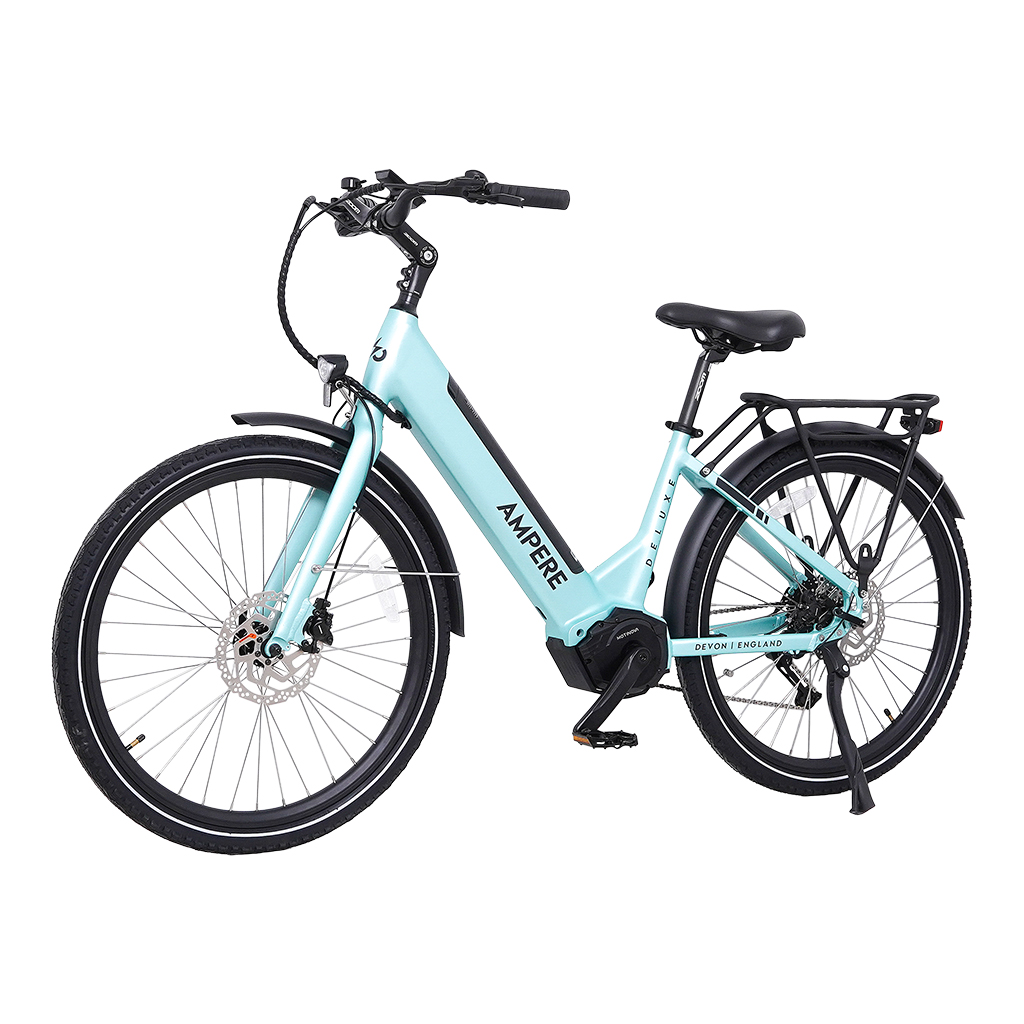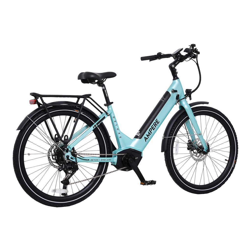 The Ampere Deluxe 26  Pro is our latest edition to our flagship model step-through e-bike, built on the success of the bestselling Deluxe. Driven by a powerful 90 Nm mid-drive motor, it delivers smooth, effortless assistance on every ride. With a removable battery offering up to 85 miles of range, the Deluxe Pro 26 blends performance, comfort, and refined styling for everyday riding and longer adventures.