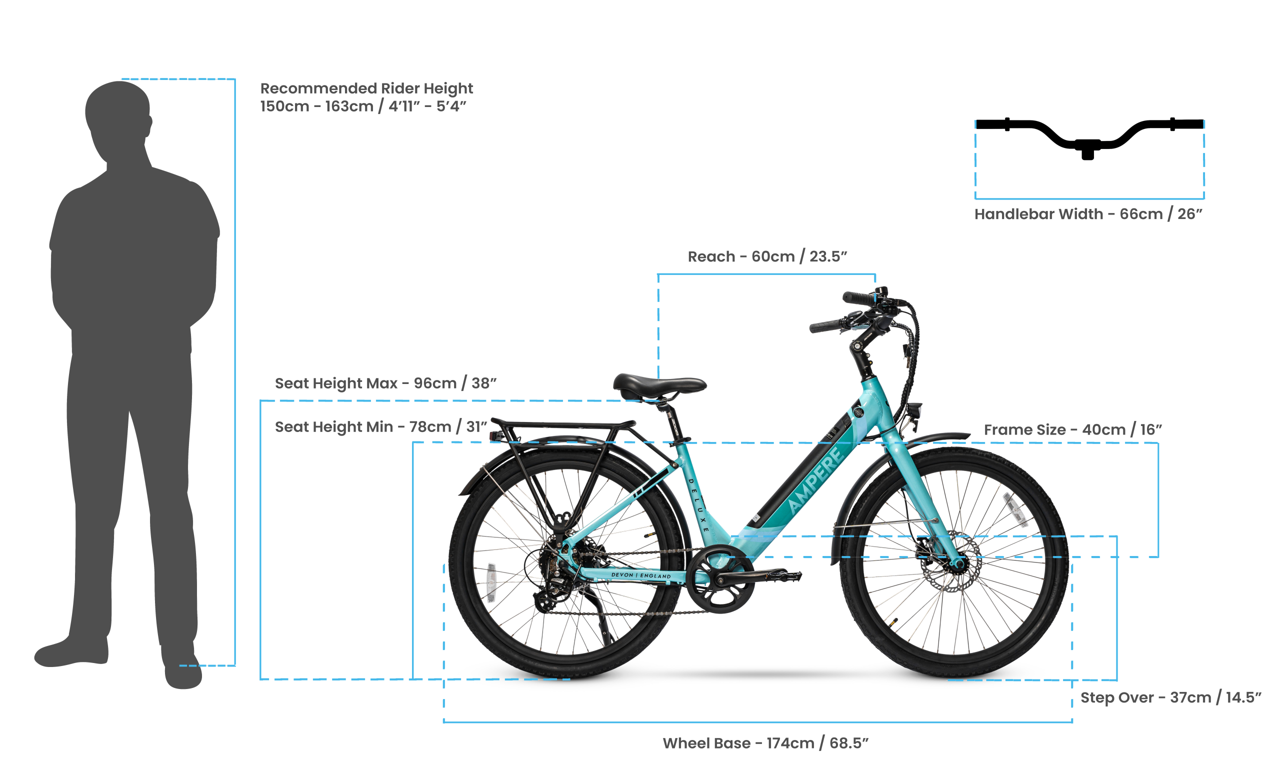 If you’re looking for a small step through electric bike designed specifically for shorter riders, the Ampere Deluxe Pro delivers everything you need: